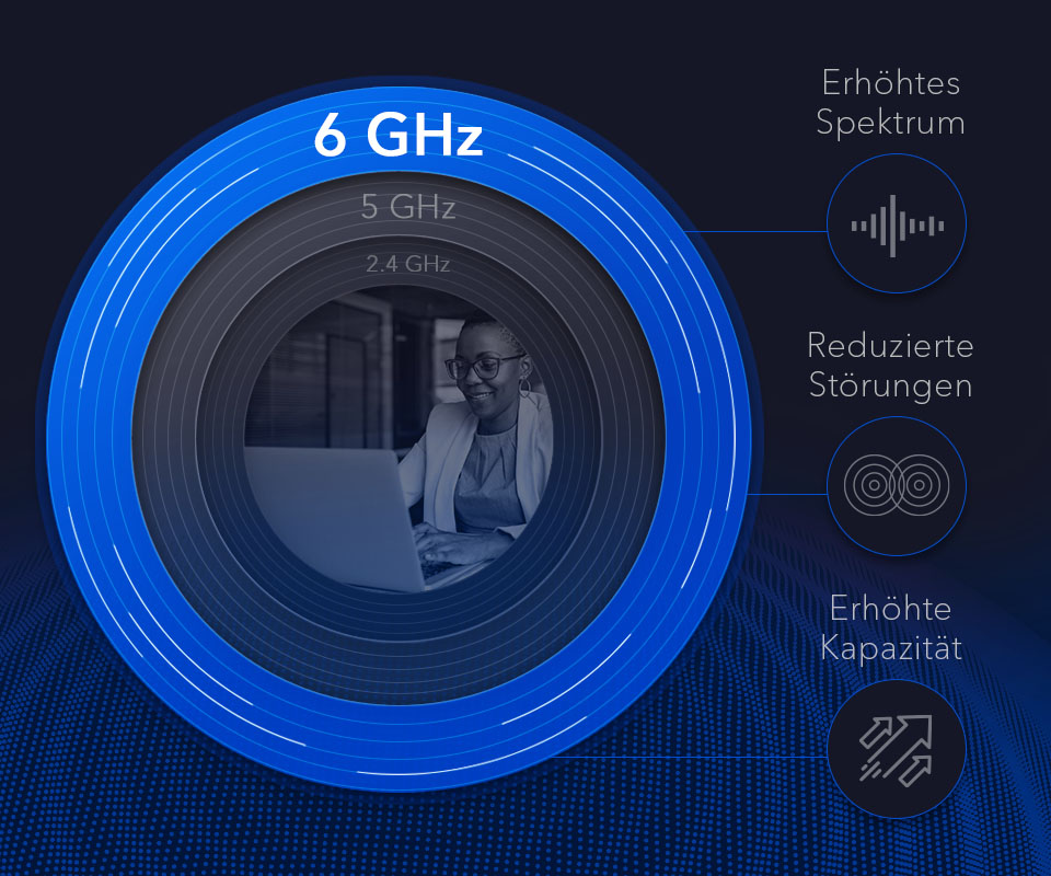 Rüsten Sie mit der neuesten WiFi 6E-Technologie auf die höchsten WLAN-Geschwindigkeiten und -Leistungen auf. Erweitern Sie Ihr Netzwerk mit WiFi 6E für schnellere Geschwindigkeit, mehr Verbindungen und Kapazität mit dem neuen 6GHz-Band.