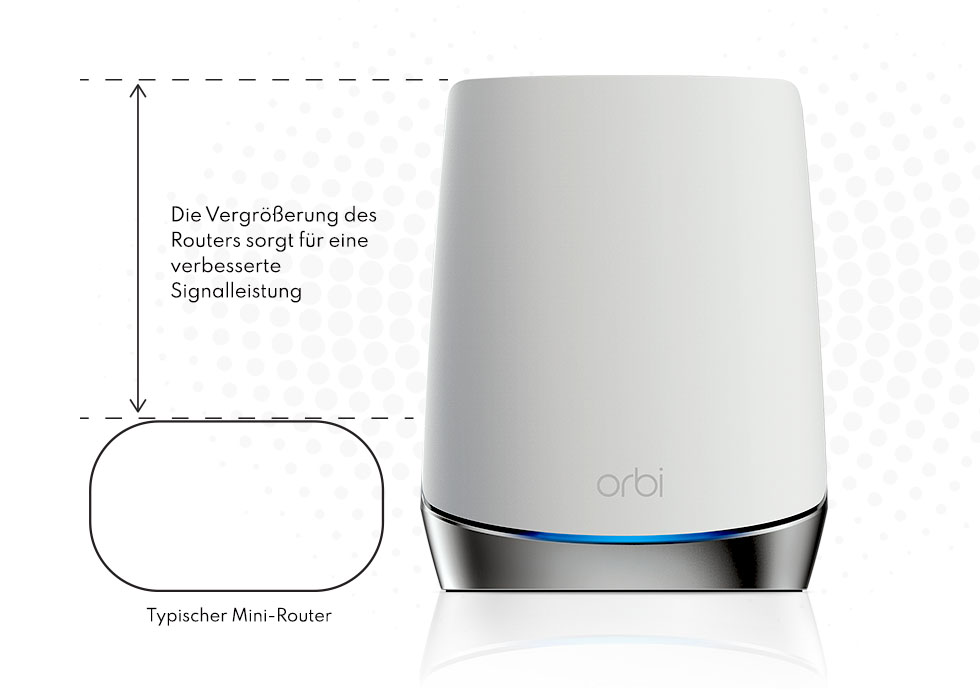 Die einzigartige Form und Höhe von Orbi umschließen Ultra-Premium-Hochleistungskomponenten, um eine deutlich bessere Abdeckung und Gesamtleistung als die Konkurrenz zu bieten.