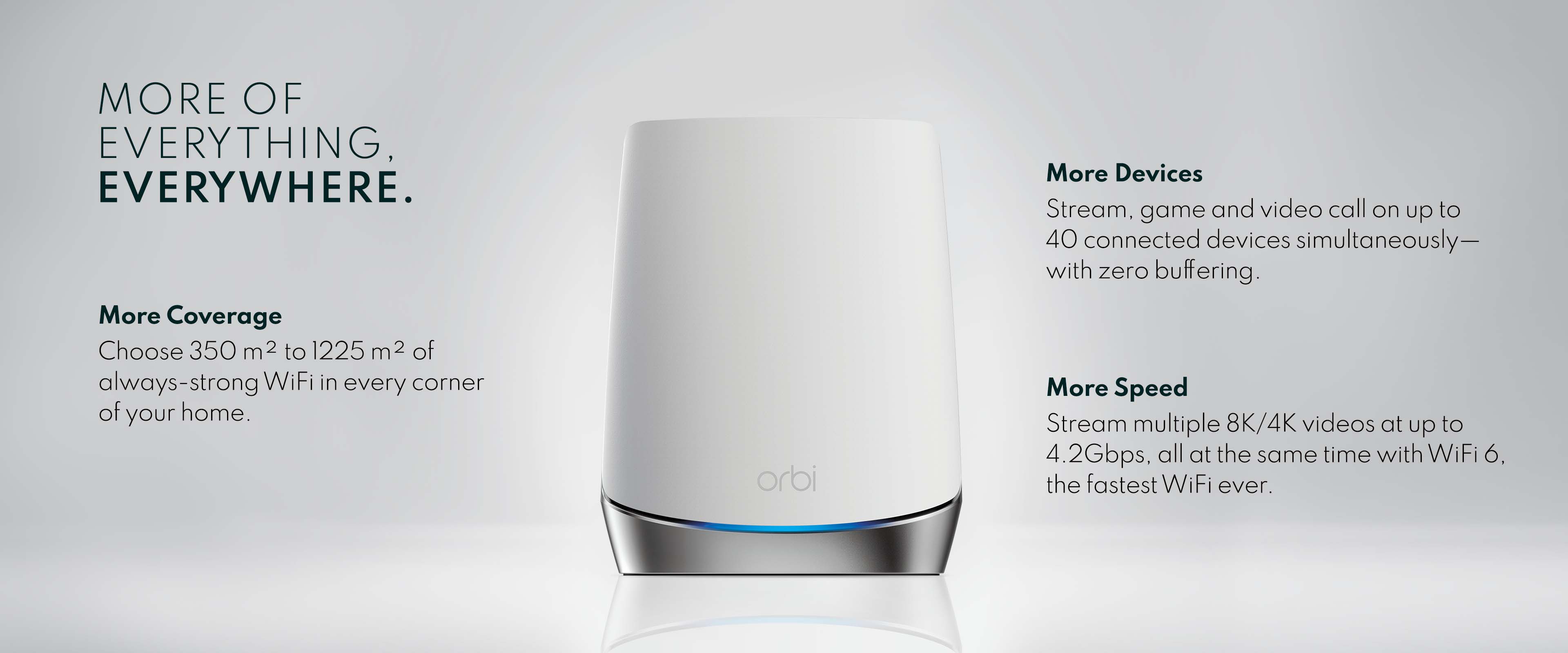 Orbi’s unique shape and height encase ultra-premium, high-power components to deliver significantly better coverage and overall performance than the competition.
