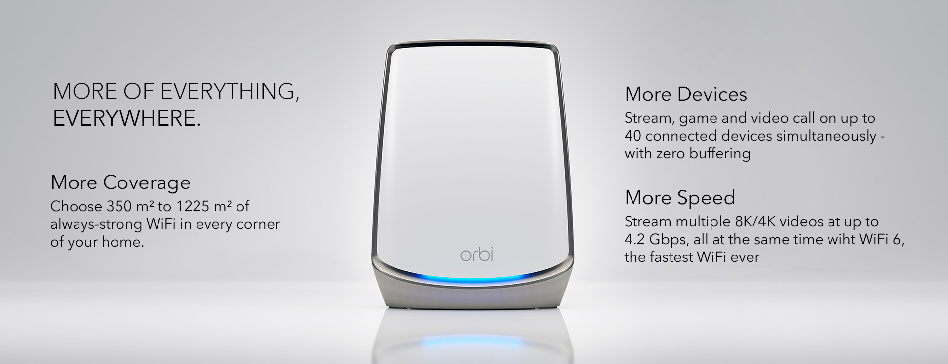 Orbi’s unique shape and height encase ultra-premium, high-power components to deliver significantly better coverage and overall performance than the competition.