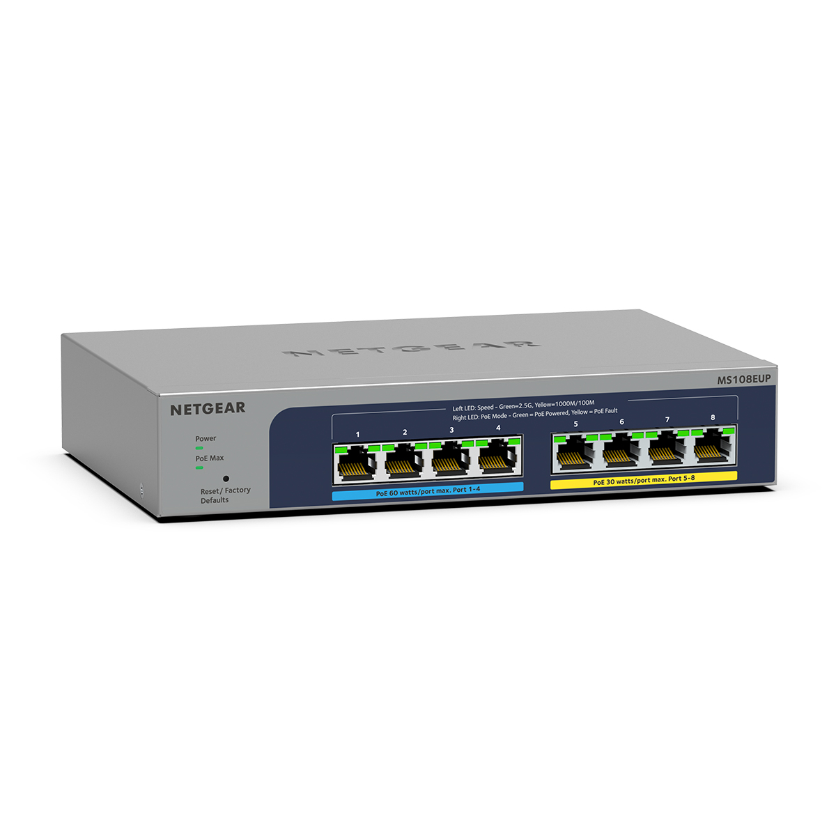 Les 8 ports fournissent des connexions Gigabit et 2.5 Gbit/s avec un fond de panier non bloquant.Prise en charge du PoE