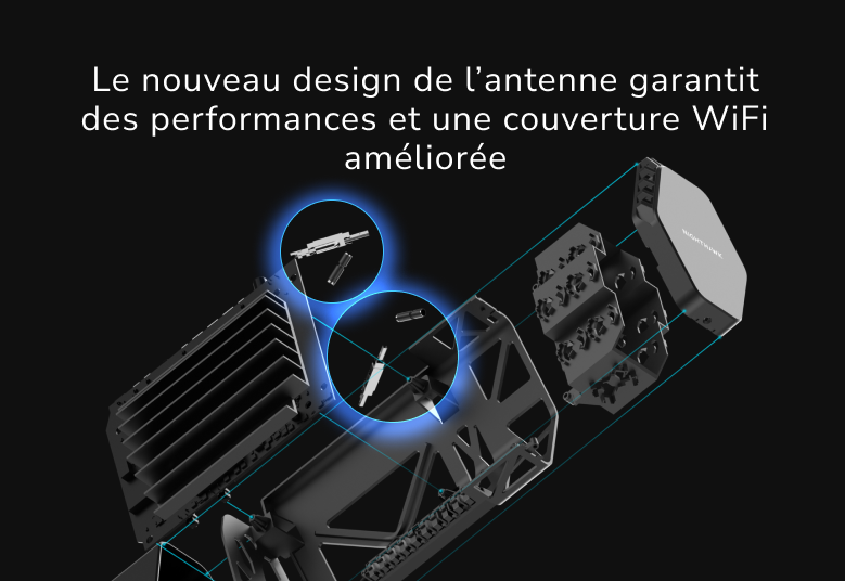 Le nouveau boîtier élégant offre un encombrement réduit et des antennes hautes performances jusqu'à 2,500 sq. ft. De couverture WiFi à 360 degrés