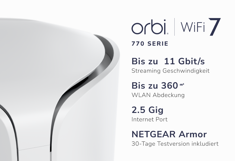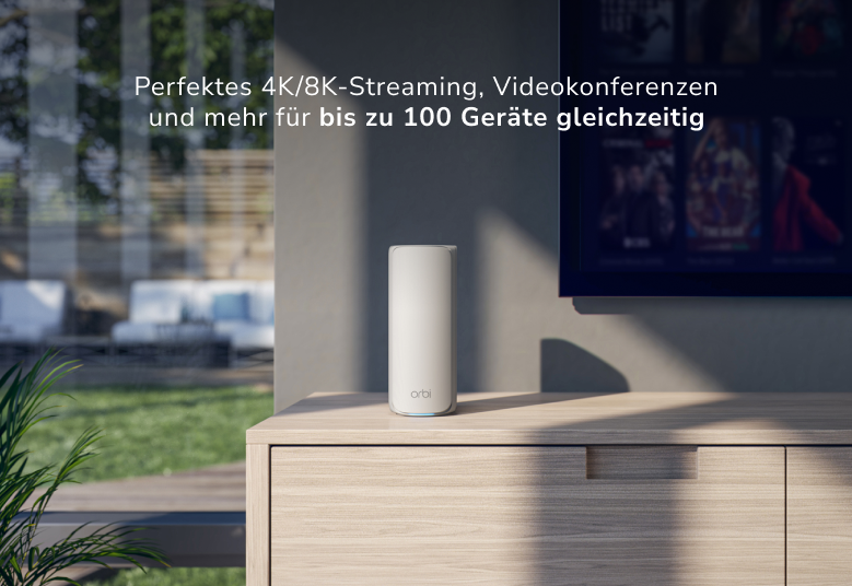 Die Orbi 770-Serie bietet exzellente Abdeckung für das gesamte Zuhause und sichere Konnektivität für berufliche Anwendungen, Streaming, Gaming und vieles mehr.