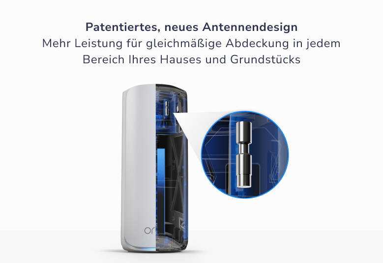 Das innovative neue Design von Orbi und die leistungsstarke Antennenanordnung sorgen für eine außergewöhnliche 360°-WLAN-Abdeckung in jedem Winkel Ihres Zuhauses und Grundstücks, unabhängig vom Grundriss.