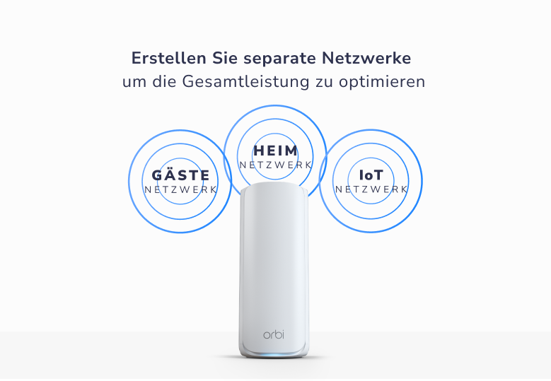 Mit dem Gast-WLAN-Netzwerk können Gäste ganz einfach einen separaten Internetzugang einrichten, und das Internet der Dinge (IoT) WLAN-Netzwerk kann verwendet werden, um Ihre IoT-Produkte wie Sicherheitskameras, Lautsprecher und digitale Assistenten zu verbinden und gleichzeitig Ihr Netzwerk zu schützen.