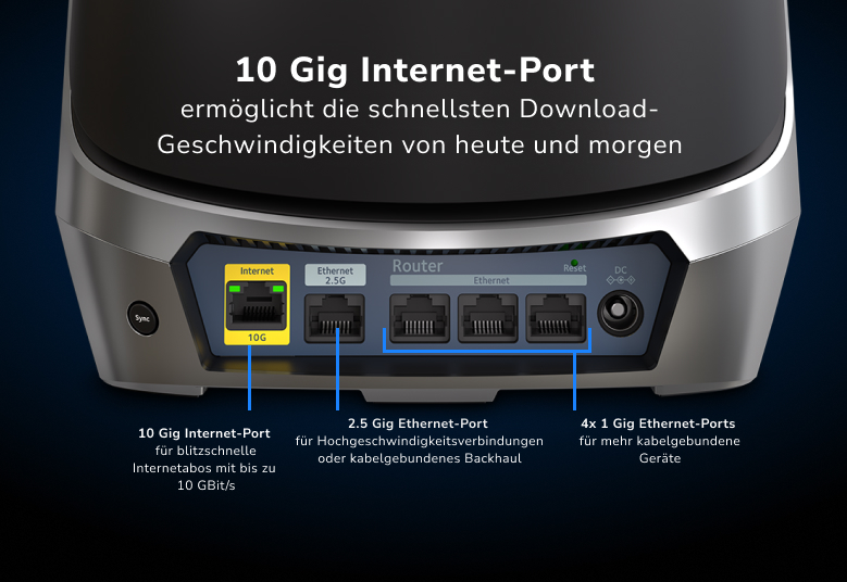 Entwickelt für eine beispiellose Abdeckung und Leistung in Ihrem gesamten zuhause. Profitieren Sie von einer blitzschnellen Geschwindigkeit von bis zu 10,8 GBit/s für alle Geräte in jedem Raum.