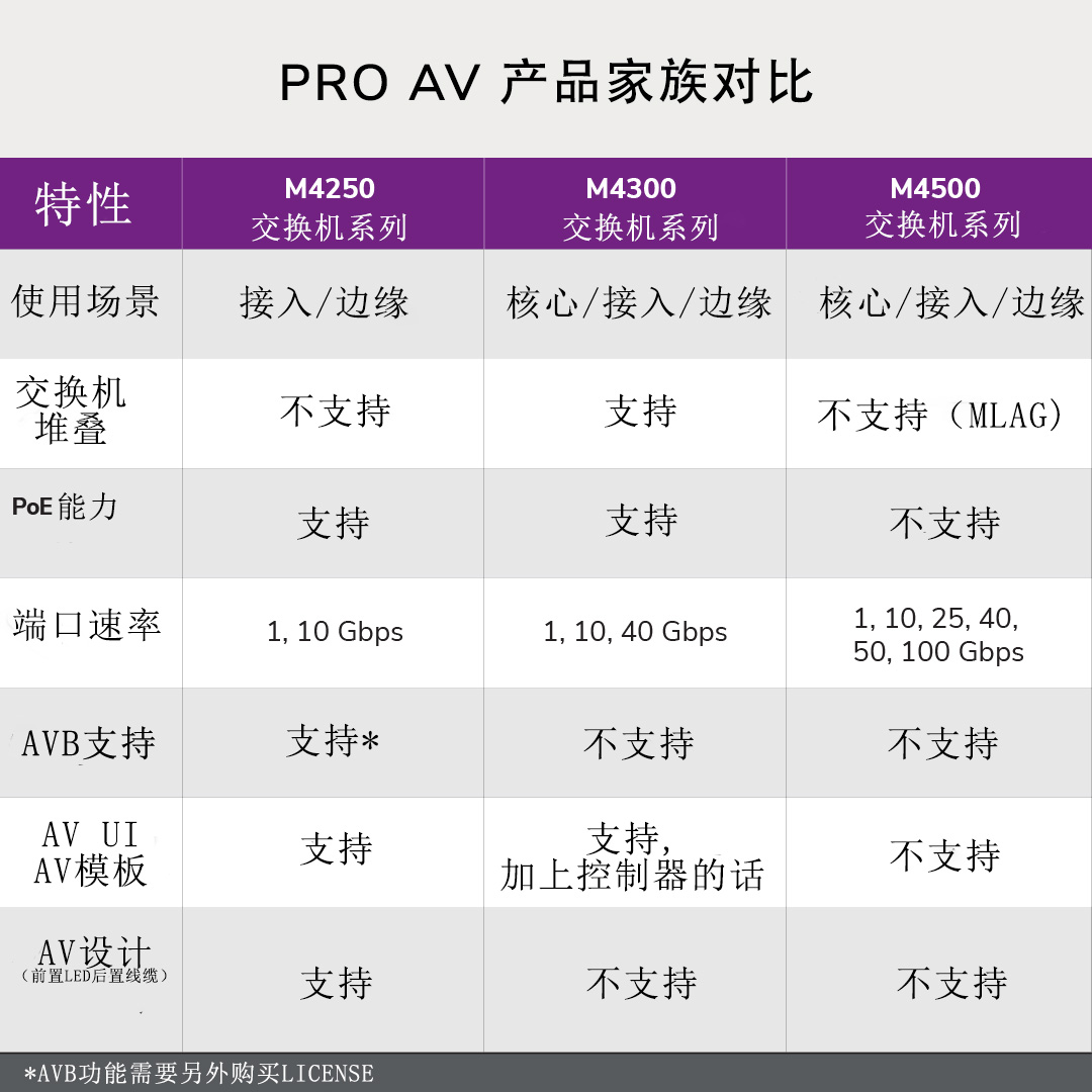 比较 M4250系列交换机