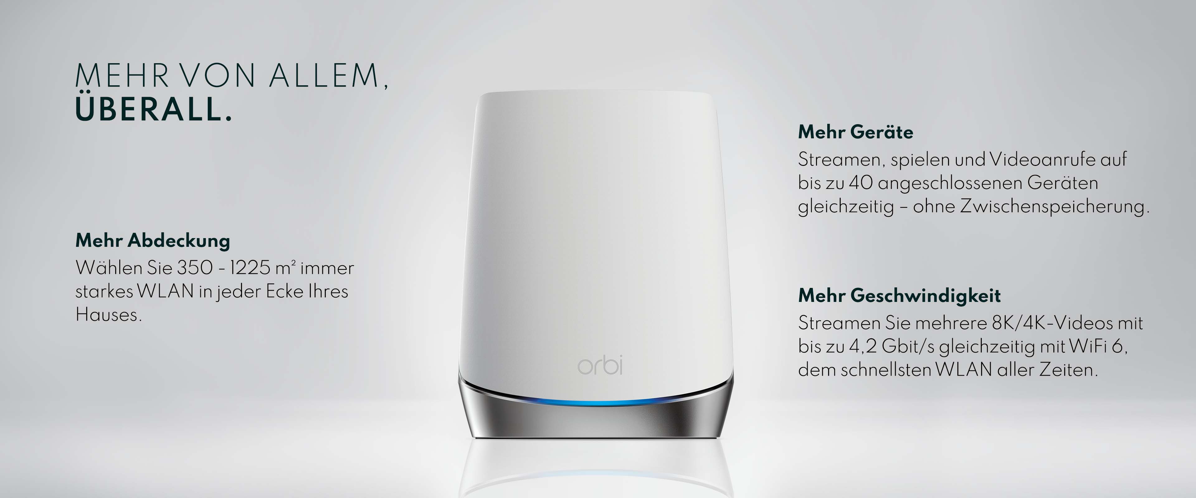 Orbi Tri-Band WiFi 6 Mesh-System, 4,2GBit/s, Router + 6 Satelliten (RBK757)