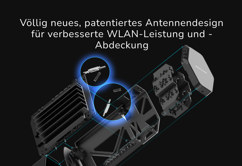 - Vier (4) leistungsstarke interne Antennen mit Hochleistungsverstärkern