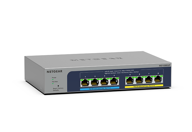 8個埠提供每個埠高達2.5 Gbps的專用無阻塞帶寬。PoE支援