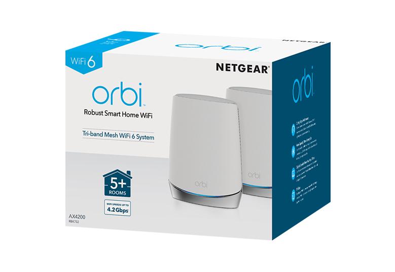 - AX4200三頻WiFi : 2.4GHz (600Mbps†)+ 5GHz (1200Mbps†),用於連接到互聯網的WiFi設備。5GHz (2400Mbps†)專用WiFi鏈路,可加快Orbi 路由器和Orbi 衛星之間的數據連接速度