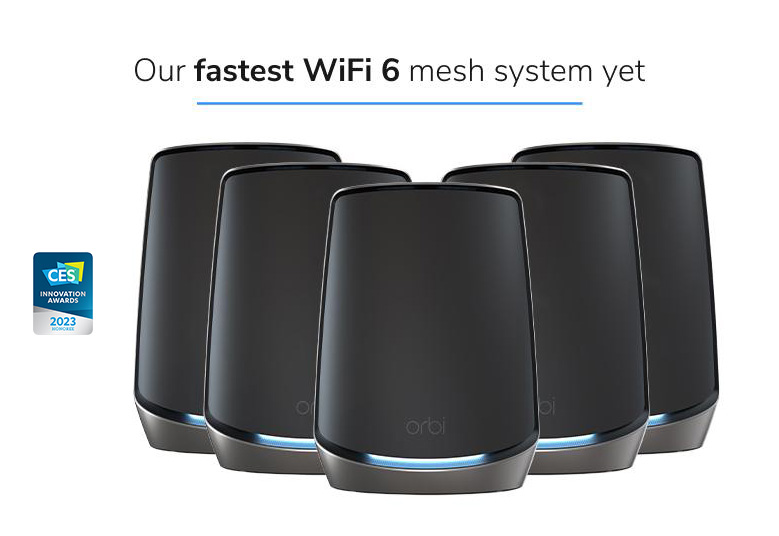 Orbi 860 Series Tri-Band WiFi 6 Mesh System, 6Gbps, 10 Gig Port, 5-Pack, Black, with 1-year NETGEAR Armor included