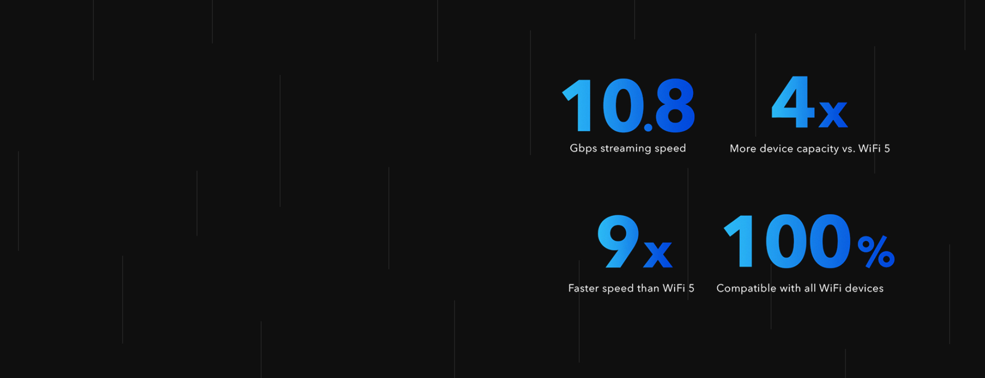The RAXE500 router is one of the first of its kind, featuring groundbreaking new WiFi 6E technology that opens an exclusive 6GHZ WiFi band. Reap the benefits of the fastest WiFi speeds possible with less device congestion and interference to make streaming, working, and gaming from home better than ever before.