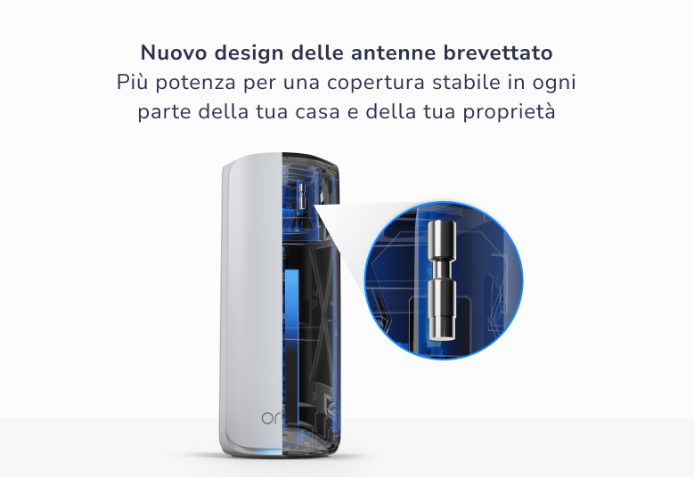 L'innovativo design Orbi e l'array di antenne ad alte prestazioni offrono una copertura WiFi a 360° in ogni angolo della casa, indipendentemente dalla sua configurazione.
