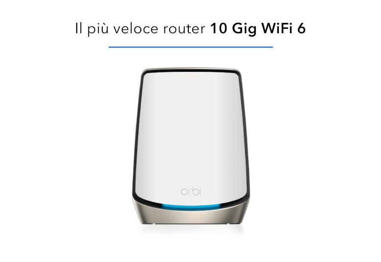 - È possibile espandere la copertura WiFi premendo semplicemente un pulsante per aggiungere un satellite Orbi 860 (venduto separatamente). Porta il tuo WiFi nel futuro con la tecnologia Mesh brevettata di Orbi.