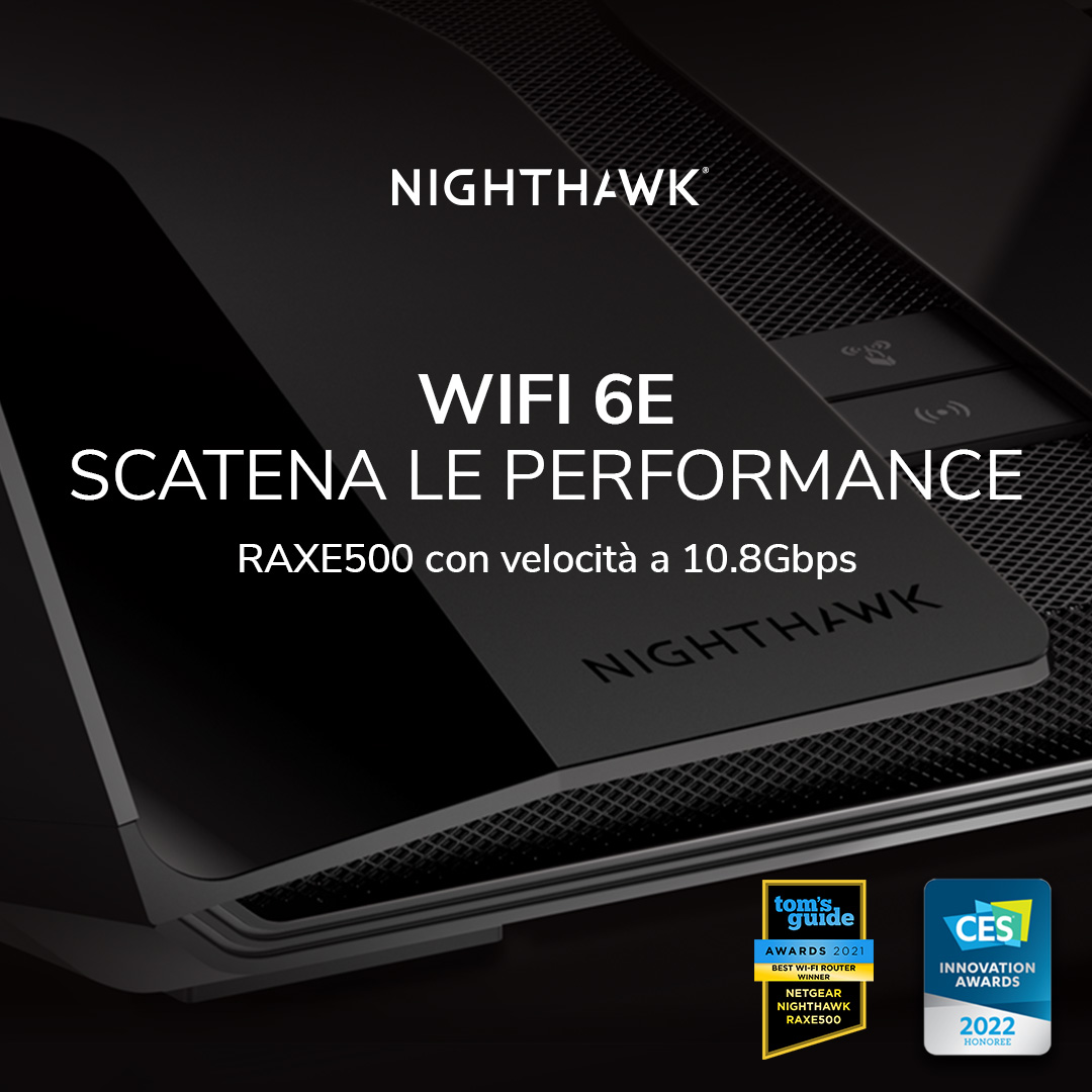 Router Nighthawk® WiFi 6E Tri-Band (fino a 10,8Gbps) dotato di nuova banda a 6GHz, NETGEAR Armor™ e NETGEAR Smart Parental Controls™