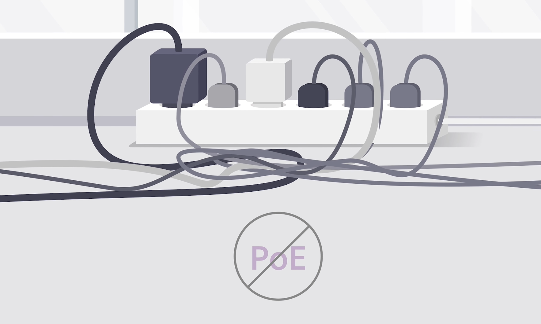 必要な電源アダプターが少なくて済み、1つのケーブル配線のみで稼働可能です。