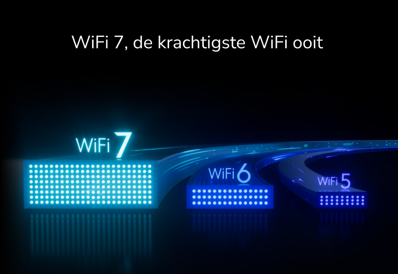 • WiFi 7 biedt 2,4x hogere snelheden dan WiFi 6 en maximaliseert de prestaties van al uw WiFi-apparaten