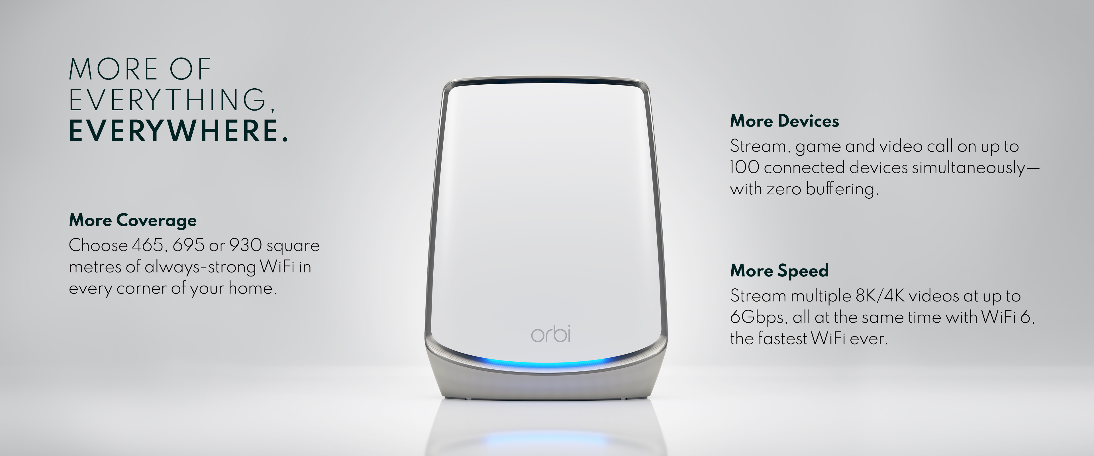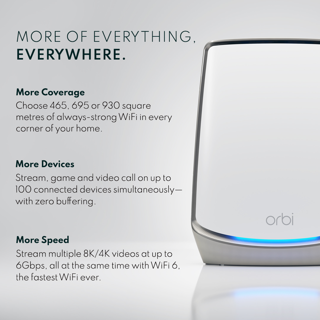 Orbi’s unique shape and height encase ultra-premium, high-power components to deliver significantly better coverage and overall performance than the competition.