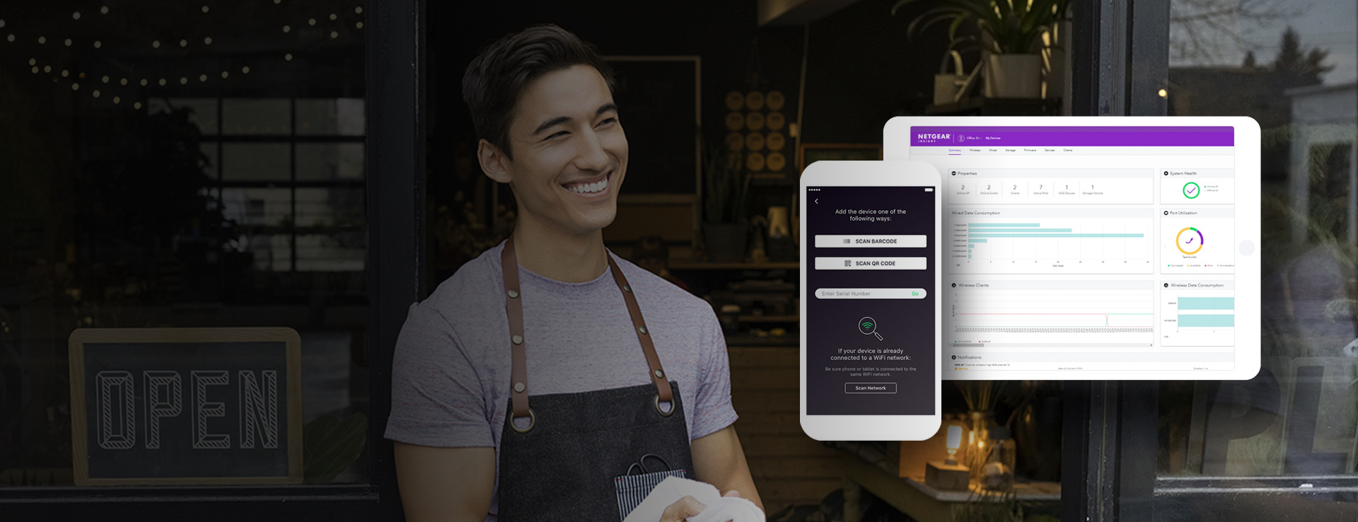 Prosta, a jednocześnie wydajna kontrola sieci w dowolnym miejscu i czasie, nawet w wielu lokalizacjach. NETGEAR Insight obsluguje siec, dzieki czemu mozna skupic sie na prowadzeniu firmy