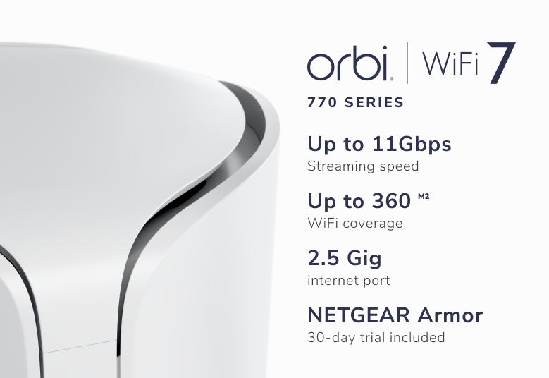 Orbi 770 Series delivers flawless whole-home coverage and secure connectivity to power work, streaming, gaming, and more.