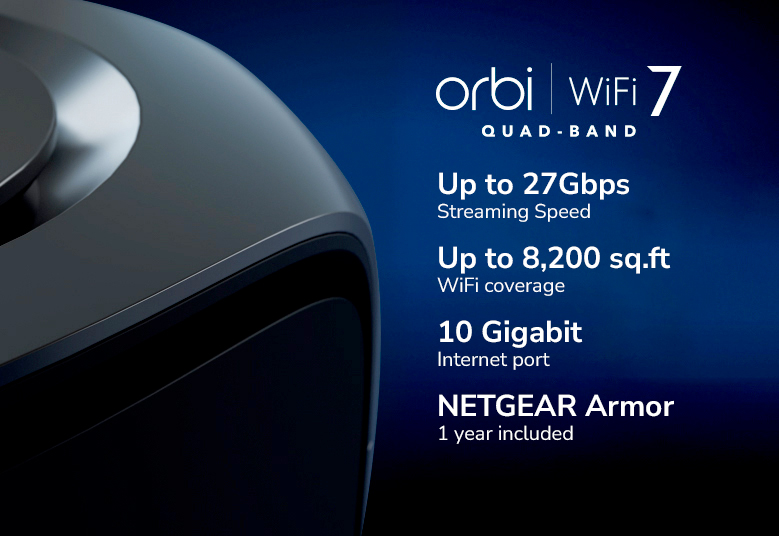 RBKE973S Orbi WiFi 7, our most powerful WiFi ever RBE973SB Discover a superior class of WiFi